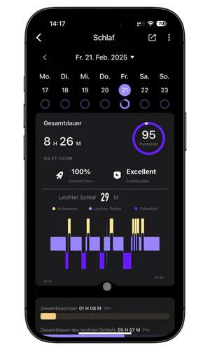 Der Smart Ring trackt deine Schlafphasen und gibt individuelle Empfehlungen, damit du ausgeruhter und energiegeladener aufwachst.
